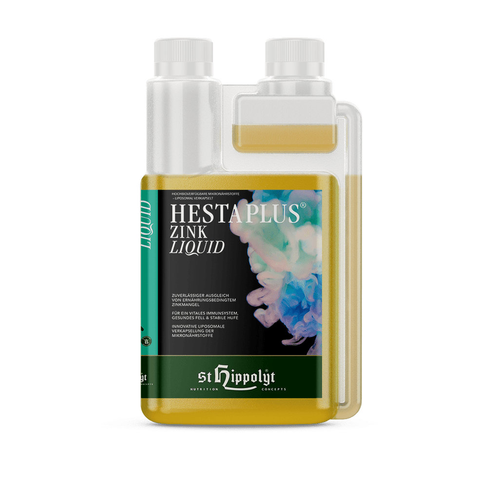 Mit St. Hippolyt Hesta Plus Zink Liquid haben Pferdebesitzer ein effizientes Ergänzungsfutter für Pferde, das Zink direkt verfügbar macht und Pferde bei Fell, Hufen und Leistungsanforderungen unterstützt.
