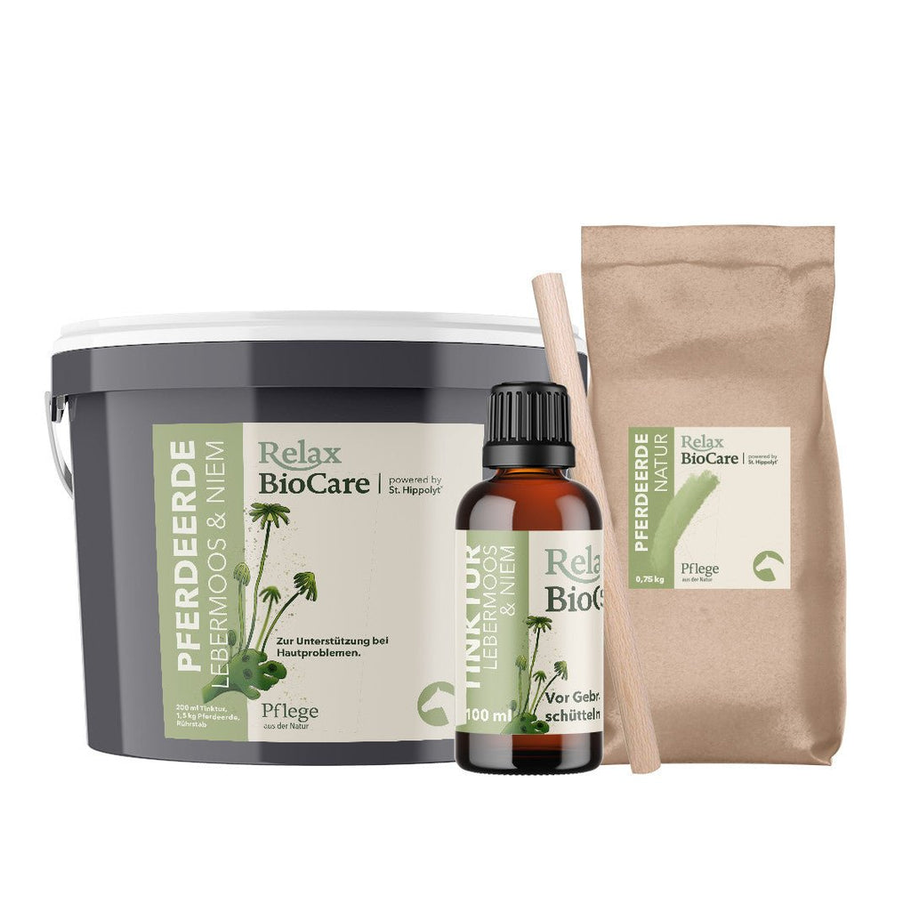 1 kleines Set enthält 0,75 kg Pferdeerde, 100ml Tinktur sowie einen Rührstab.